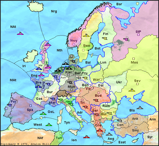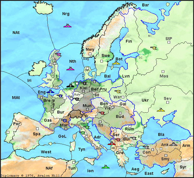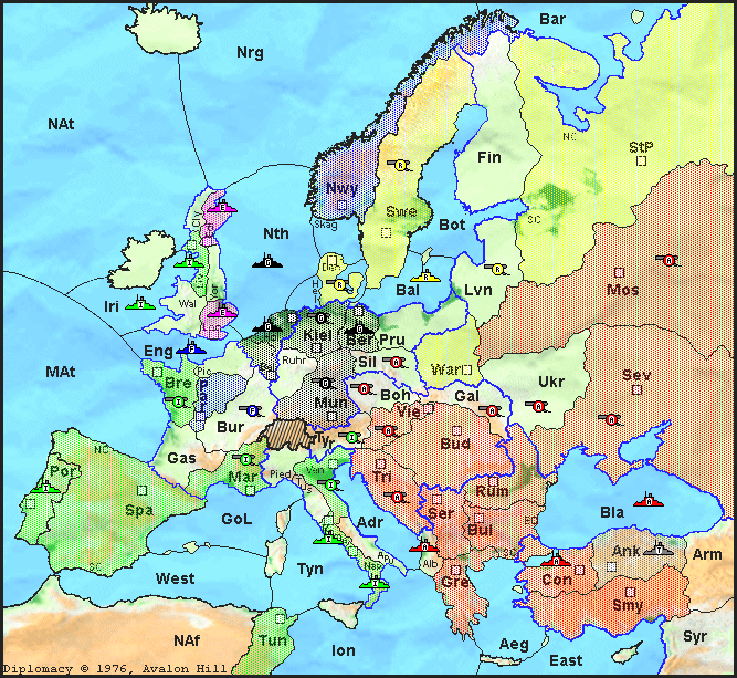 Dies ist eine PBeM-Diplomacy Partie von Ludomaniac. Es gelten die bei Ludomaniac üblichen Spielregeln. Hier gehts zu meinen Hausregeln.